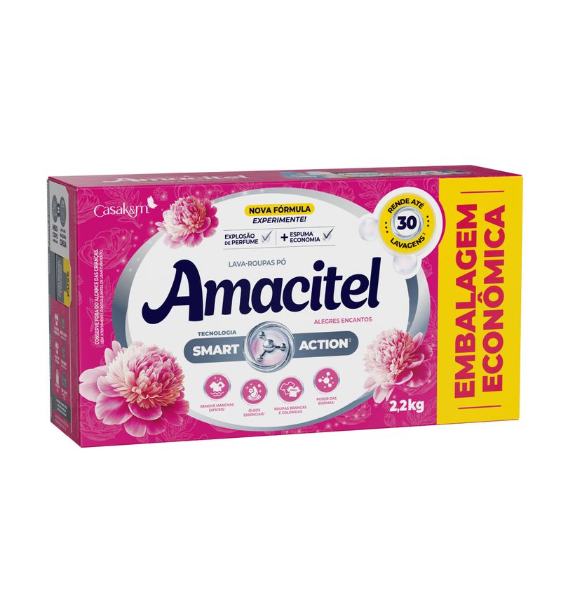 A marca AMACITEL, reconhecida pela sua qualidade em amaciante de roupas, conta agora com uma novidade: o lava-roupas AMACITEL na versão ALEGRES ENCANTOS e TOQUE DE POESIA. Indicado para todos os tipos de tecidos*, é eficaz na remoção das manchas mais difíceis, conserva as cores das roupas, deixando-as com um perfume sofisticado e intenso, como do amaciante de roupas Amacitel Luxo na versão Alegres Encantos e Toque de Poesia.