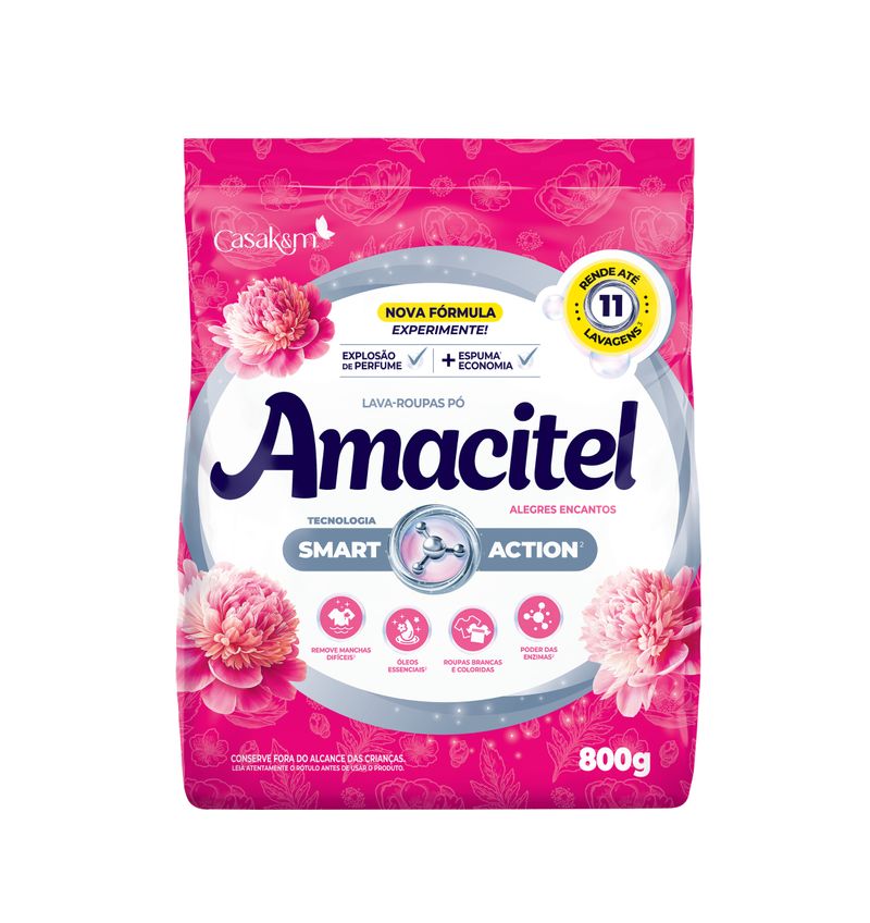 A marca AMACITEL, reconhecida pela sua qualidade em amaciante de roupas, conta agora com uma novidade: o lava-roupas AMACITEL na versão ALEGRES ENCANTOS e TOQUE DE POESIA. Indicado para todos os tipos de tecidos*, é eficaz na remoção das manchas mais difíceis, conserva as cores das roupas, deixando-as com um perfume sofisticado e intenso, como do amaciante de roupas Amacitel Luxo na versão Alegres Encantos e Toque de Poesia.